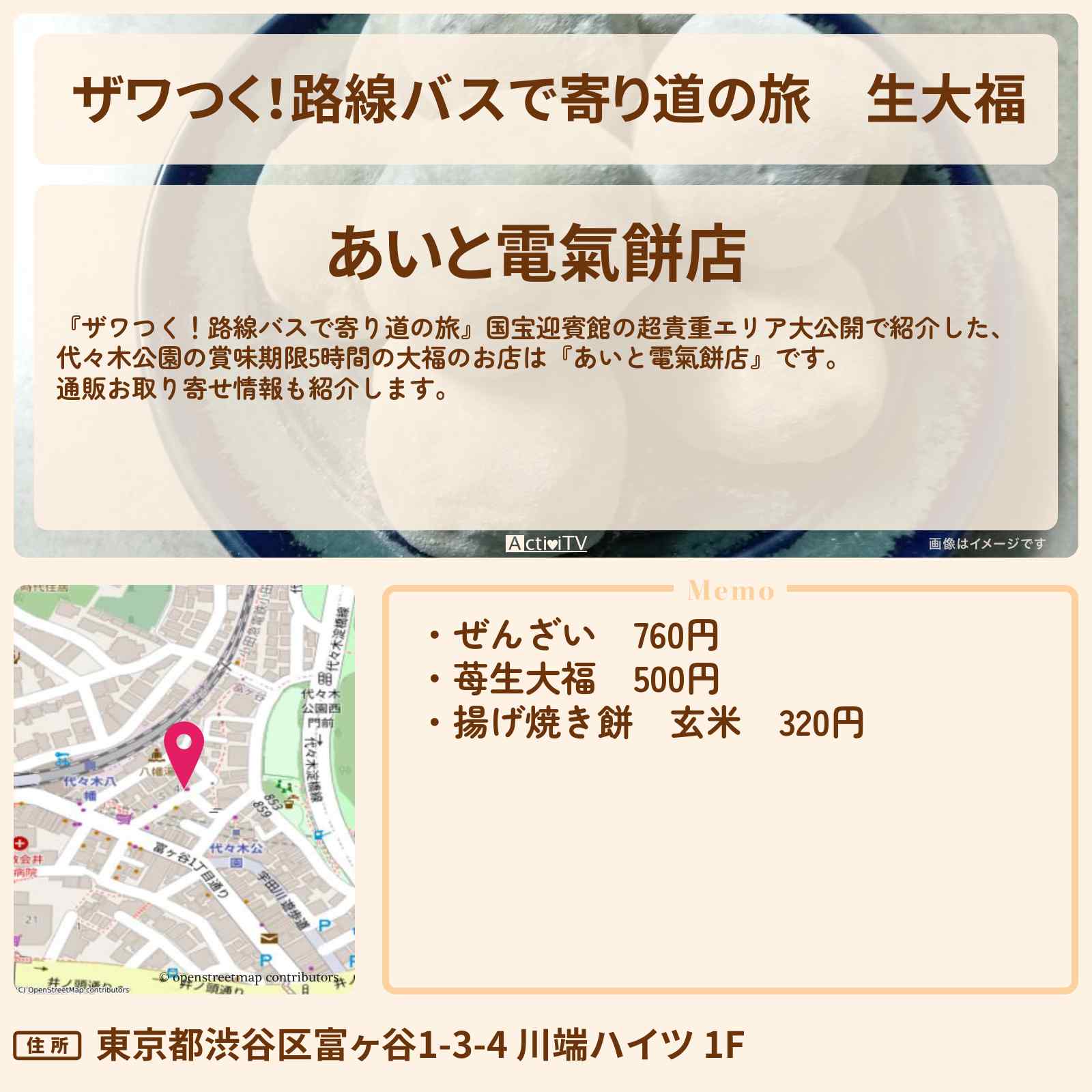 賞味期限5時間のふわふわ餅スイーツ 代々木公園駅「あいと電氣餅店」