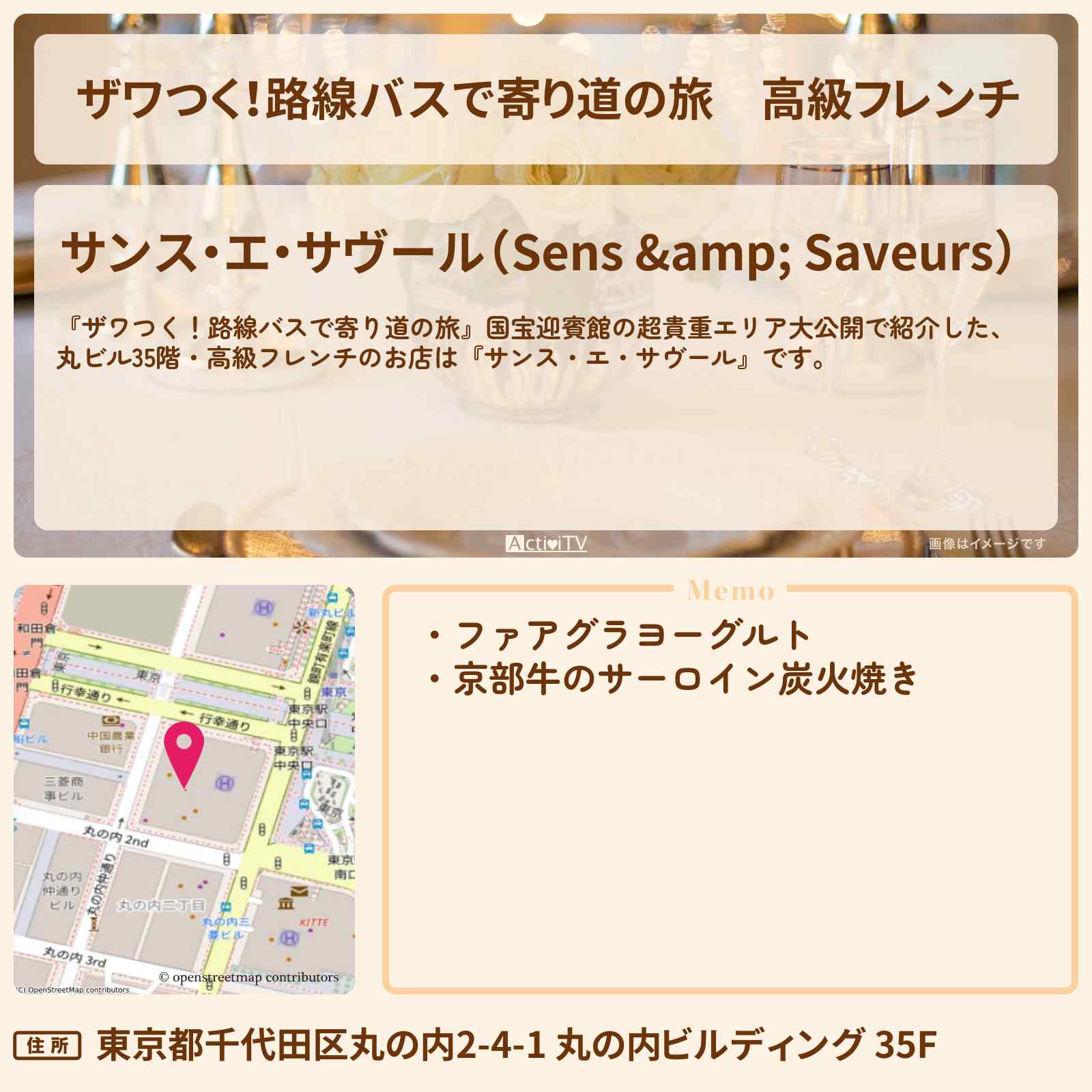 東京・丸の内のレストラン「サンス・エ・サヴール」のTOPページです。コンセプトやニュース&イベント、メニュー、アクセスなど各種情報をご紹介。…