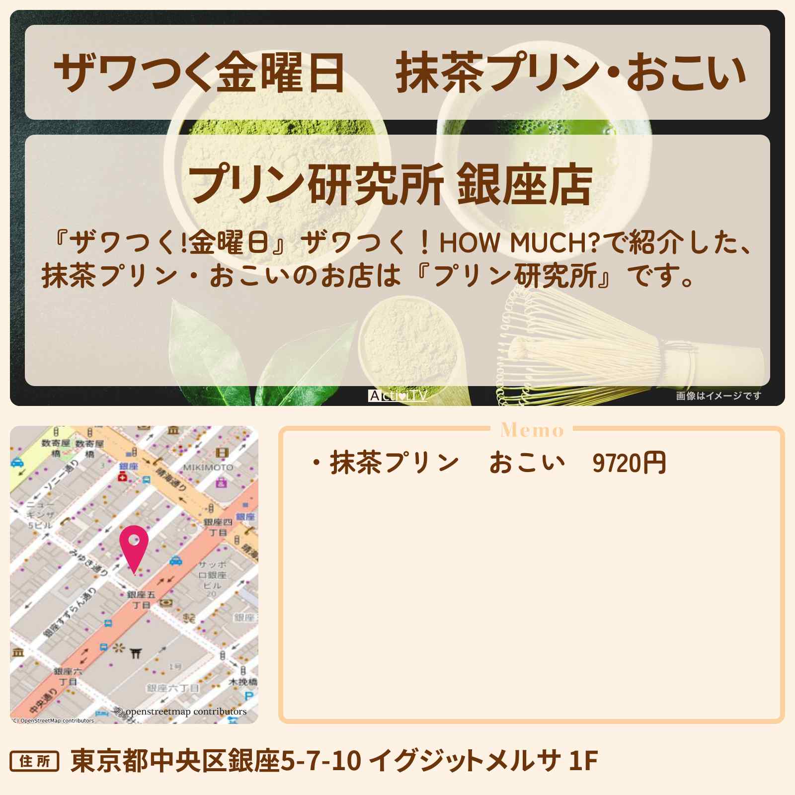 抹茶プリン・おこい 銀座駅「プリン研究所 銀座店」