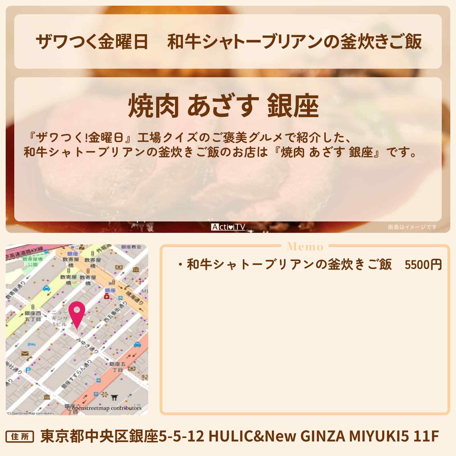和牛シャトーブリアンの釜炊きご飯 銀座駅「焼肉 あざす 銀座」