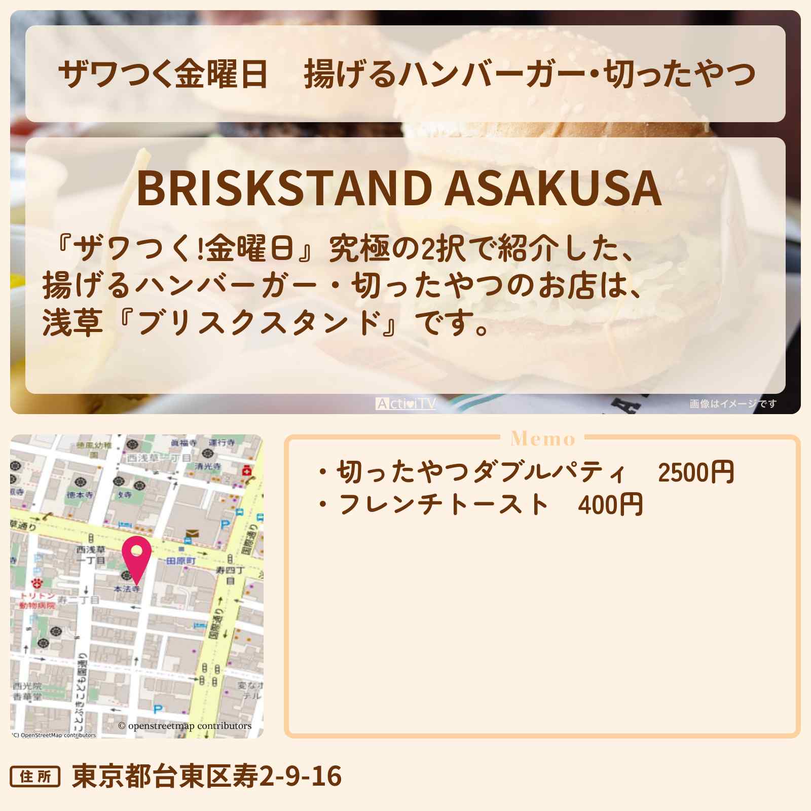 揚げるハンバーガー 田原町駅「BRISKSTAND ASAKUSA」