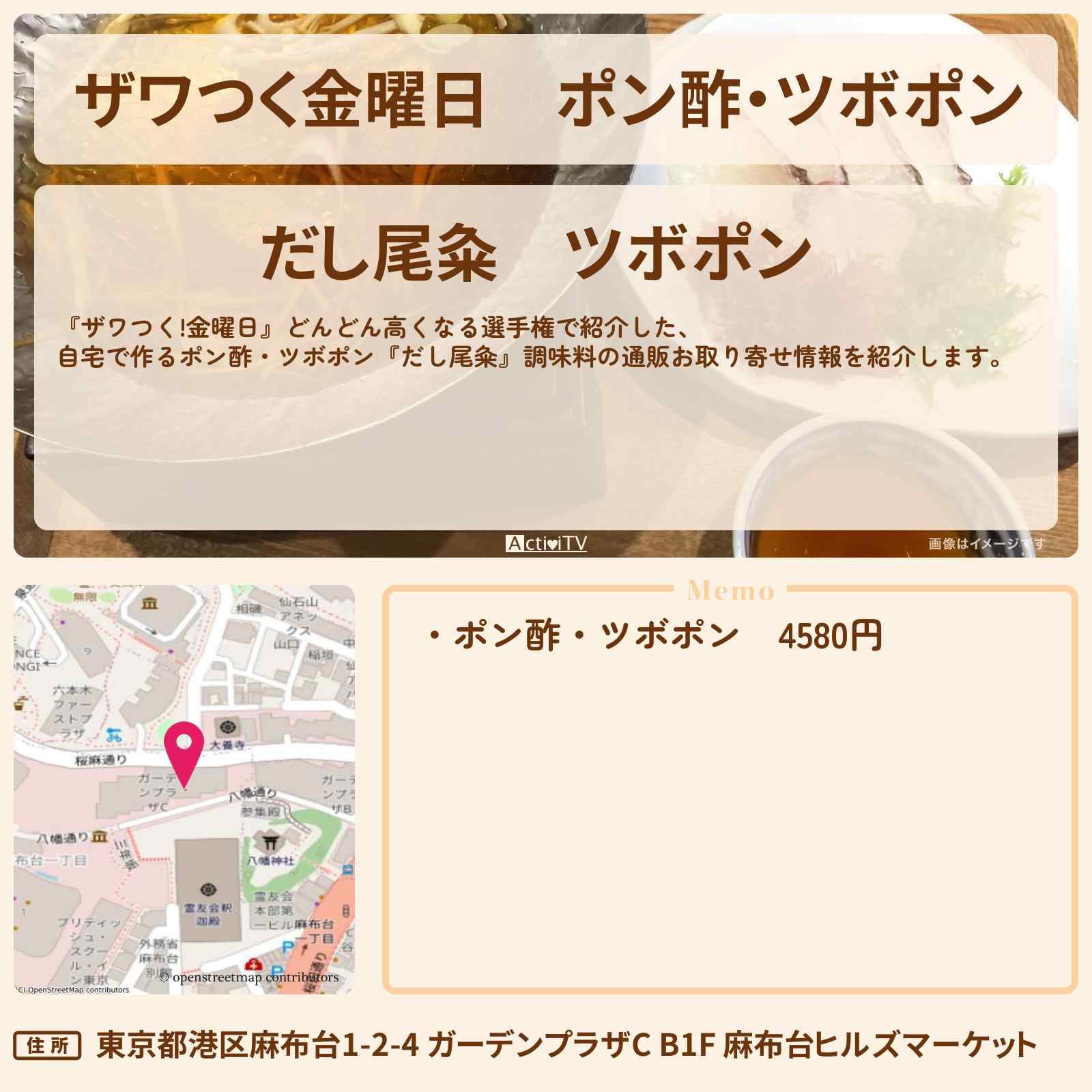 | 住所 | 東京都港区麻布台1-2-4 ガーデンプラザC B1F 麻布台ヒルズマーケット |