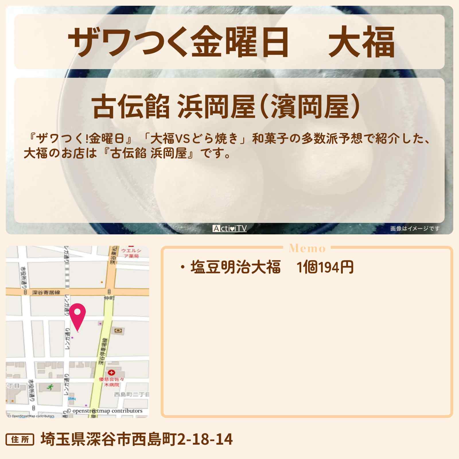 | 住所 | 埼玉県深谷市西島町2-18-14 |