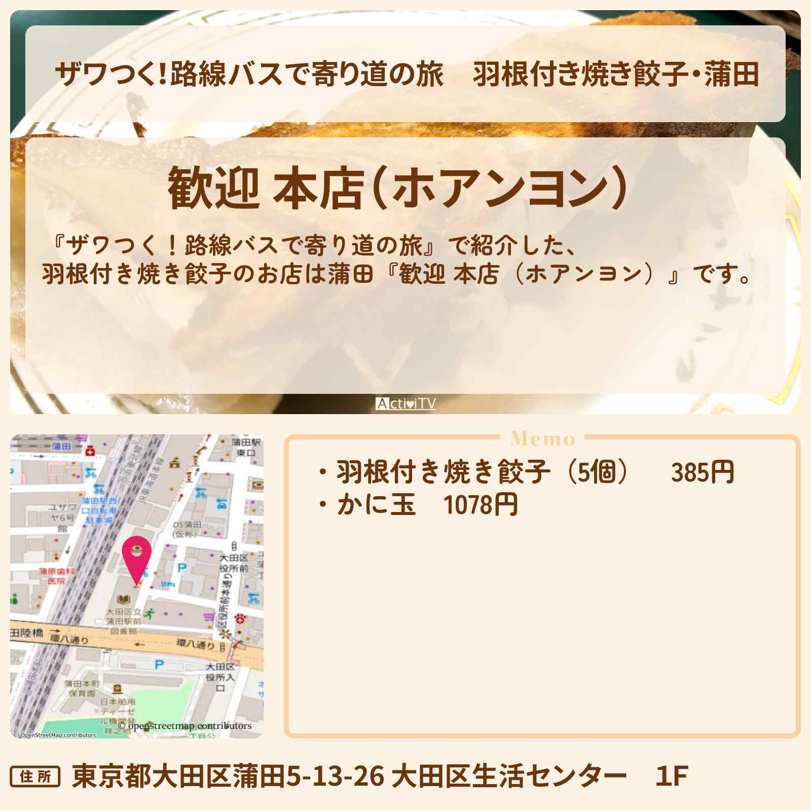 【ザワつく!路線バスで寄り道の旅】羽根付き焼き餃子・蒲田『歓迎 本店(ホアンヨン)』のお店の場所