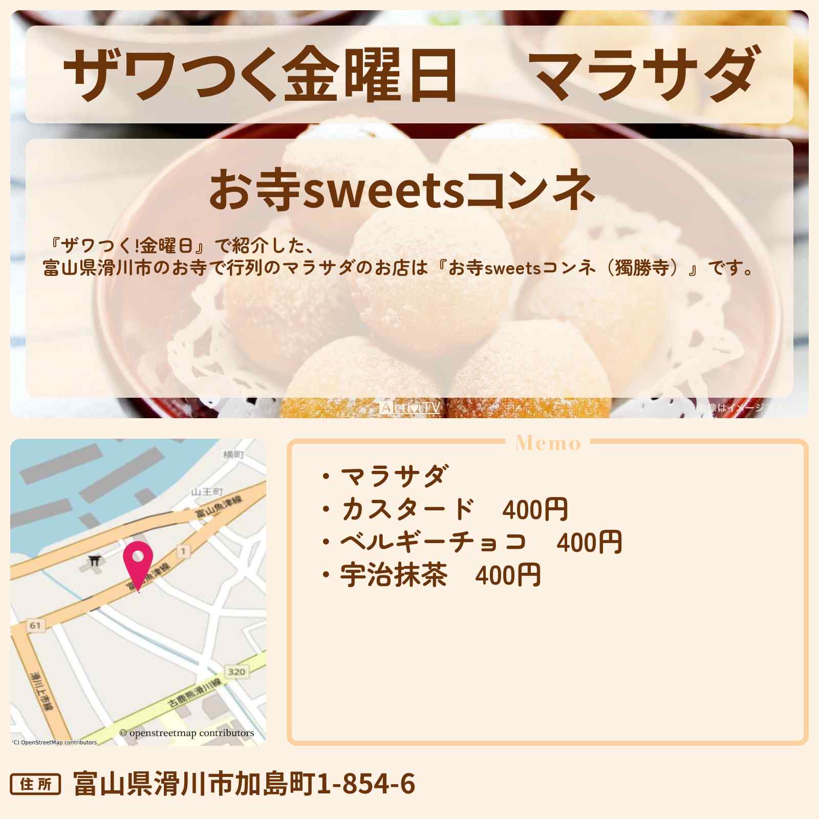 こちらは『お寺sweetsコンネ(滑川/ドーナツ)』のお店ページです。Rettyで食が好きなグルメな人たちからお店を探そう!