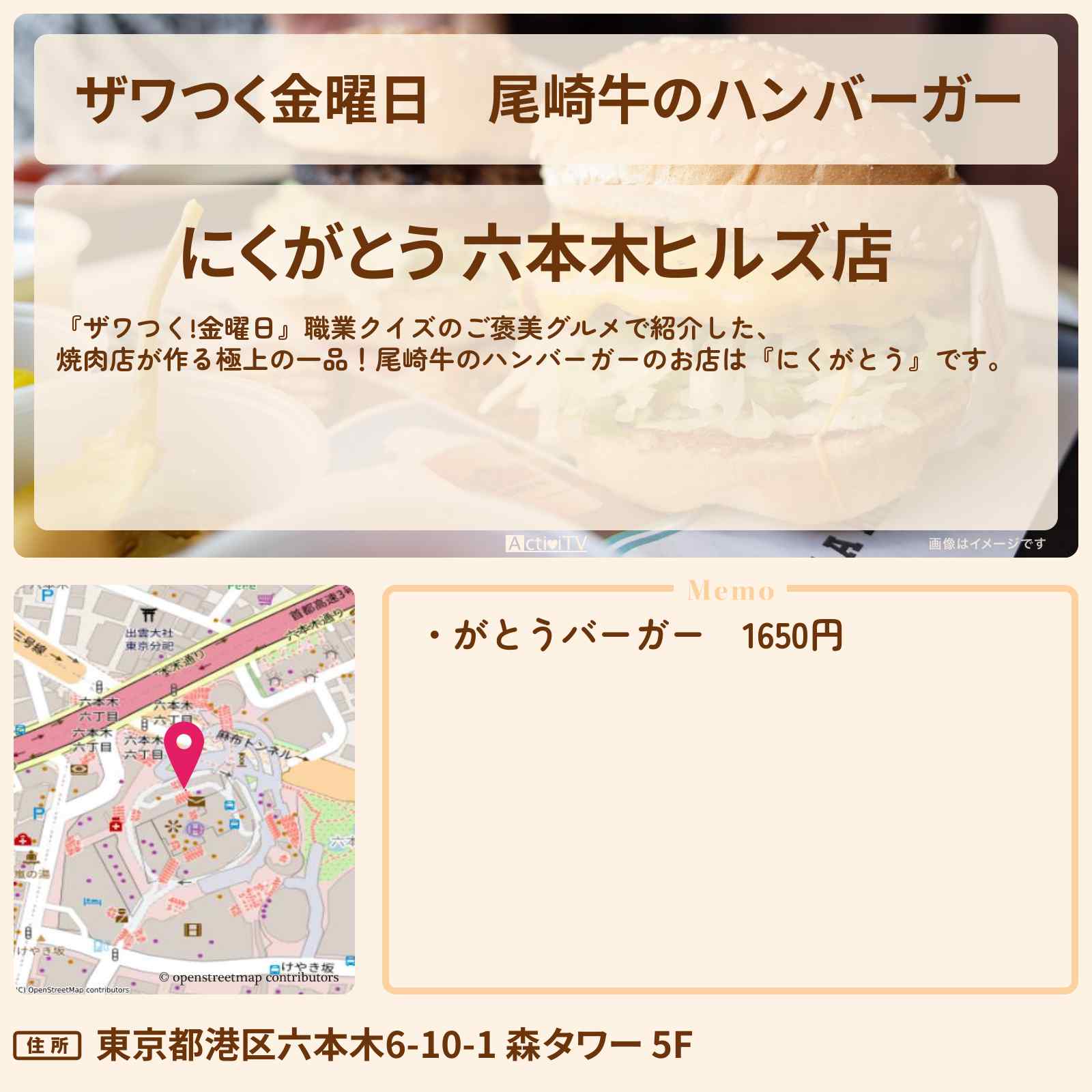 尾崎牛のハンバーガー 六本木駅「にくがとう 六本木ヒルズ店」