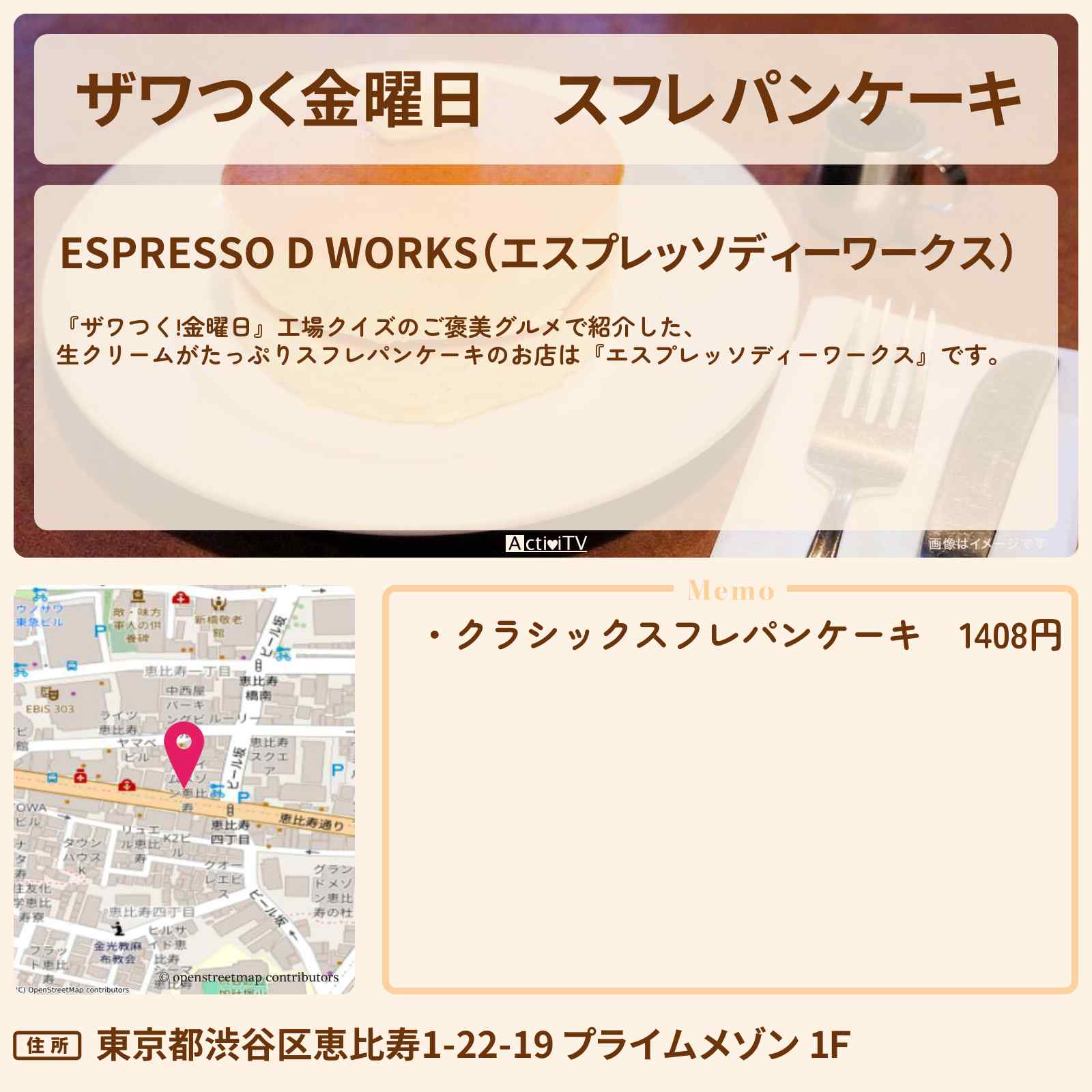 スフレパンケーキ 恵比寿駅「ESPRESSO D WORKS(エスプレッソディーワークス)」