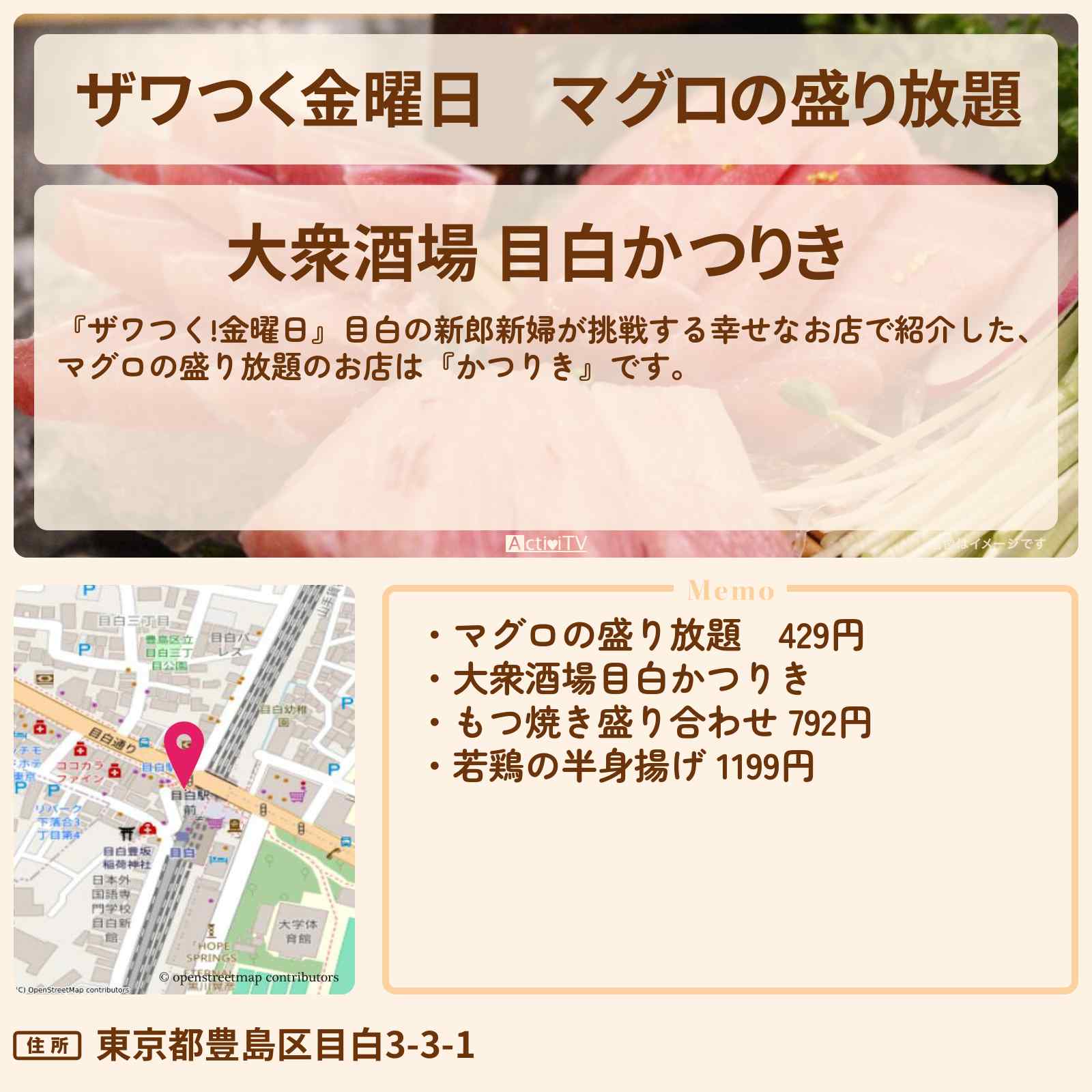 【ザワつく金曜日】マグロの盛り放題『かつりき』目白の新郎新婦が挑戦するお店の場所